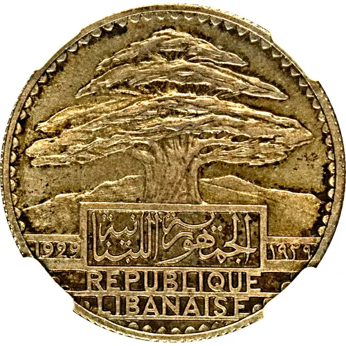 | Obverse lettering | الجمهورية اللبنانية 1929 ١٩٢٩ REPUBLIQUE LIBANAISE (Translation: Lebanese Republic 1929) |