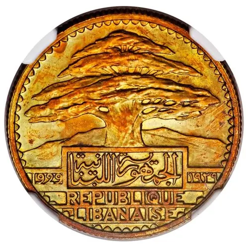 | Opis líce | الجمهوريّة اللبنانيّة 1929 ١٩٢٩ REPUBLIQUE LIBANAISE (Translation: Lebanese Republic) |