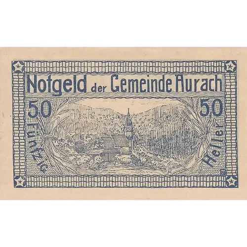 | Obverse lettering | Notgeld der Gemeinde Aurach 50 Fünfzig Heller |