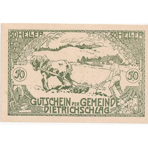 Obverse lettering 50 HELLER 50 HELLER GUTSCHEIN DER GEMEINDE DIETRICHSCHLAG