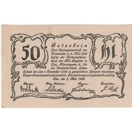 50 Heller Linz - Wirtschaftsverband der Mil. Gagisten