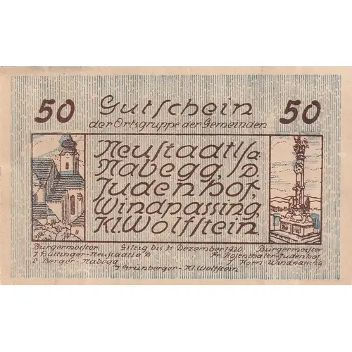 | Issuer | Municipalities of Neustadtl an der Donau, Nabegg, Judenhof, Windpassing, and Klein Wolfstein (Federal State of Lower Austria) |