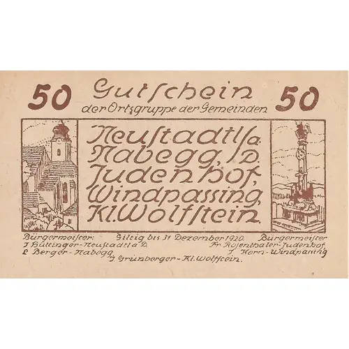 | Issuer | Neustadtl an der Donau, Nabegg, Judenhof, Windpassing, and Klein Wolfstein, Municipalities of |