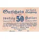 Gutschein des Landes Salzburg über 50 Heller Gültig bis 31. Dez. 1919 Nachahmung strafbar Das Land Salzburg haftet für die Verbindlichkeit, diesen Schein bei der Landschaftskasse in gesetzlichem Bargeld einzulösen und hat hiefür eine eigene Rücklage zur Deckung bestellt. Salzburg, 1. Oktober 1919. Die Landeshauptmänner (Translation: Voucher from the State of Salzburg over 50 Heller Valid until December 31, 1919 Imitation punishable The State of Salzburg is liable for the obligation to redeem this certificate in statutory cash at the landscape treasury and has ordered its own reserve to cover this. Salzburg, October 1, 1919. The governors) |