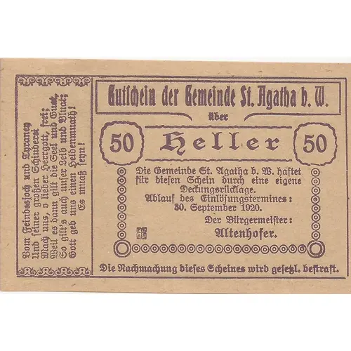 | Đơn vị phát hành | Sankt Agatha, Municipality of |