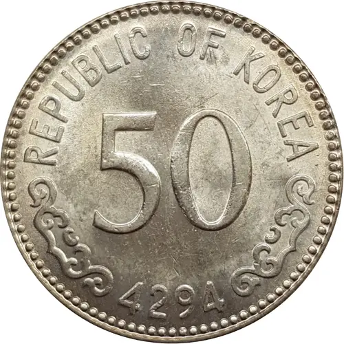 | Obverse lettering | REPUBLIC OF KOREA 50 4292 |