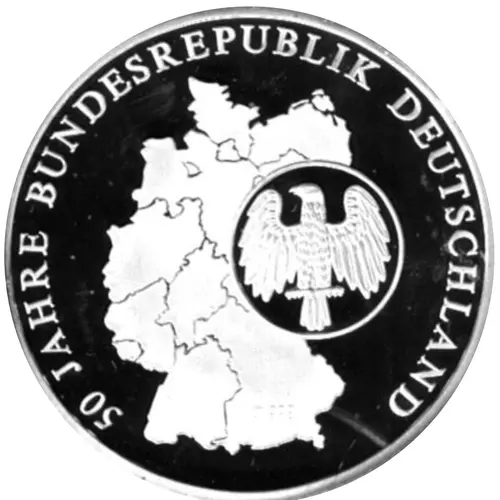 | Legenda do anverso | 50 JAHRE BUNDESREPUBLIK DEUTSCHLAND |