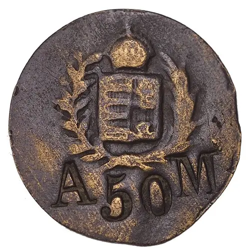 | Obverse description | Hungarian coat of arms in laurel wreath, overstamped with value and A M (Arad Moneta) |