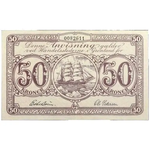 (Translation: This note is valid at the Trading Posts in Greenland for 50 Kroner)