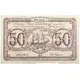 Obverse description Light purple on brown paper. At the center circle with a sail ship. Flanked by 2 circles with value. Over the values a text field, and at the bottom a field with signatures. All surrounded by a frame with the issuing authority at each side.