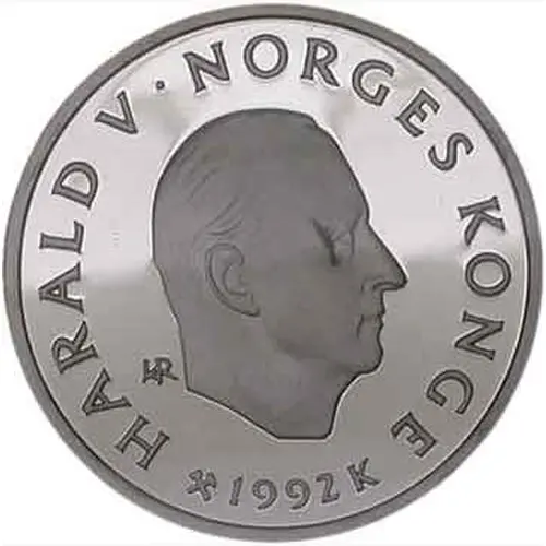 | Opis líce | HARALD V·NORGES KONGE 1992 K IAR (Translation: Harald V, King of Norway) |