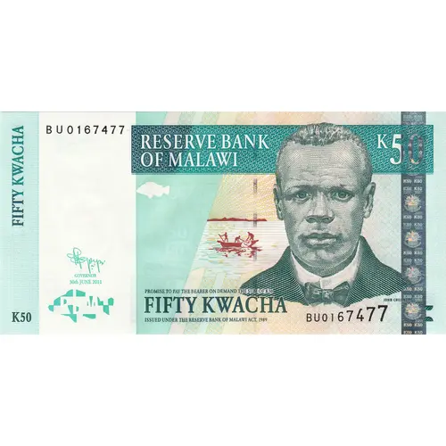 | Ön yüz lejandı | Reserve Bank of Malawi Fifty Kwacha |