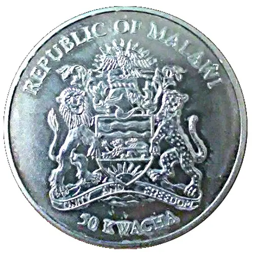 | Chữ khắc mặt trước | REPUBLIC OF MALAWI UNITY AND FREEDOM 50 KWACHA |