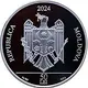 - on the central part – the Coat of Arms of the Republic of Moldova; - on the upper part – the year of issue „2024”; - in exergue – the inscription „REPUBLICA MOLDOVA” is engraved in block letters, - at the bottom – `Ag 999`, `50 LEI` and `22,0g`. |