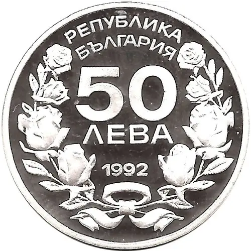 | Obverse lettering | РЕПУБЛИКА БЪЛГАРИЯ 50 ЛЕВА 1992 (Translation: Republic of Bulgaria 50 Leva) |