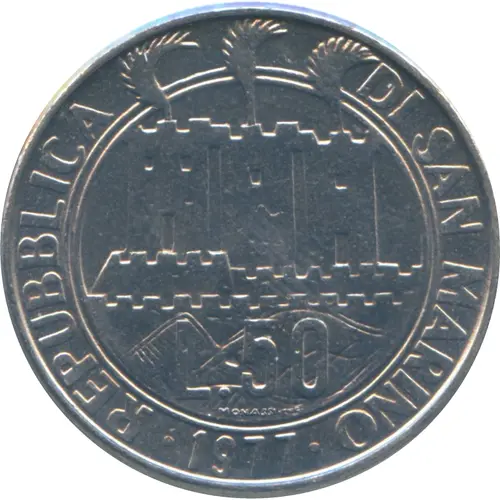 | Obverse lettering | REPUBBLICA DI SAN MARINO L.50 · 1977 · |