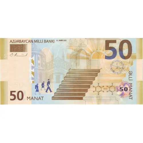 | Legenda del dritto | AZƏRBAYCAN MİLLİ BANKI ƏLLİ MANAT (Translation: National Bank of Azerbaijan, Fifty Manat) |