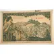 Reverse description View of Eisenach with reclining woman turning her neck to gaze at the town. Leaves drape across the top of the picture. The serial number is stamped in red to the right of the Wartburg (castle on top of the hill), the denomination `50` is in a large font below the woman`s right elbow, and the word `Ungültig` (invalid) is stamped at the very top, slightly to the right. Interestingly, the green image doesn`t sit perfectly in the yellow borders around it, with the top right-hand corner slightly higher than the top left. The name of the printer is below the outer yellow border.