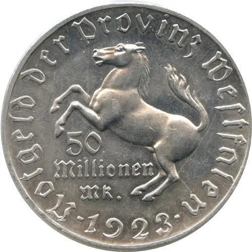 | Legenda awersu | Notgeld der Provinz Westfalen 50 Millionen Mk. ⁃1923⁃ |