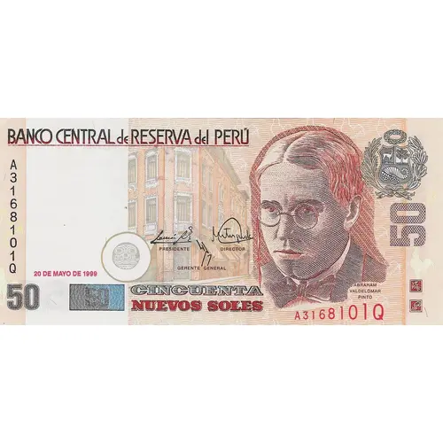 | Obverse lettering | Banco Central de Reserva del Perú Cincuenta Nuevos Soles (Translation: Central Reserve Bank of Peru Fifty Nuevos Soles) |