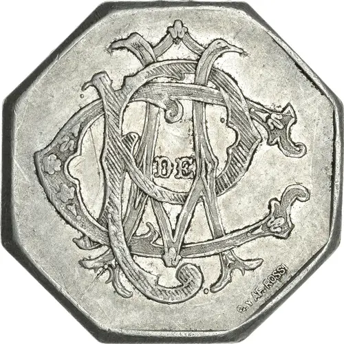 | Obverse description | Ornate CAP monogram, DE in centre. |