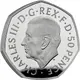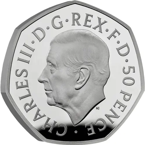 CHARLES III·D·G·REX·F·D·50 PENCE · MJ (Translation: Charles the Third by the Grace of God King Defender of the Faith) |
