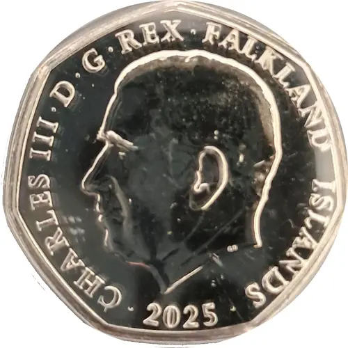 | Obverse lettering | CHARLES IIIDGREXFALKLAND ISLANDS 2025 |