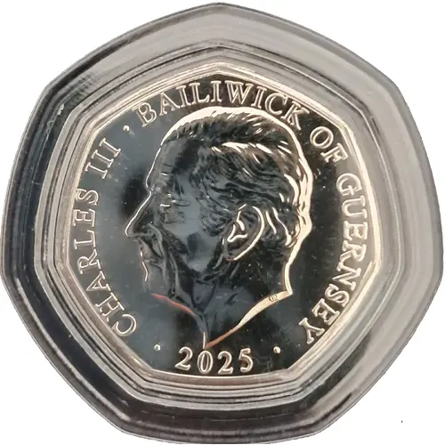 | 表面の銘文 | CHARLES III BAILIWICK OF GUERNSEY 2025 |