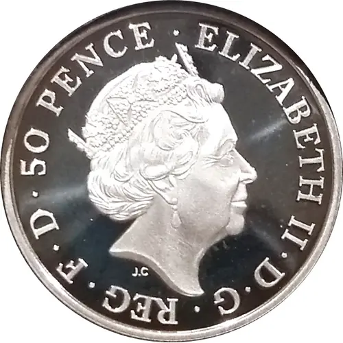 | Obverse lettering | ELIZABETH II·D·G·REG·F·D·50 PENCE· J.C (Translation: Elizabeth the Second by the Grace of God Queen Defender of the Faith) |