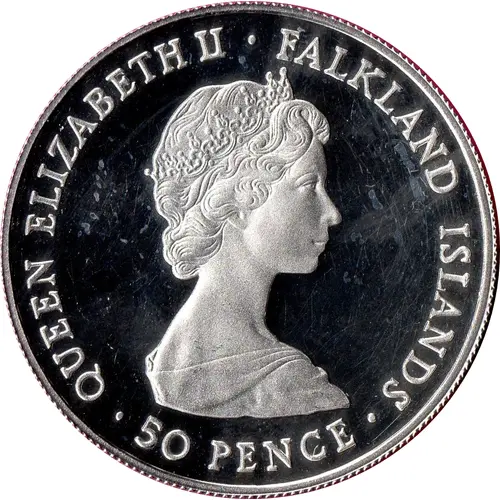 | Opis líce | QUEEN ELIZABETH II · FALKLAND ISLANDS · 50 PENCE · |