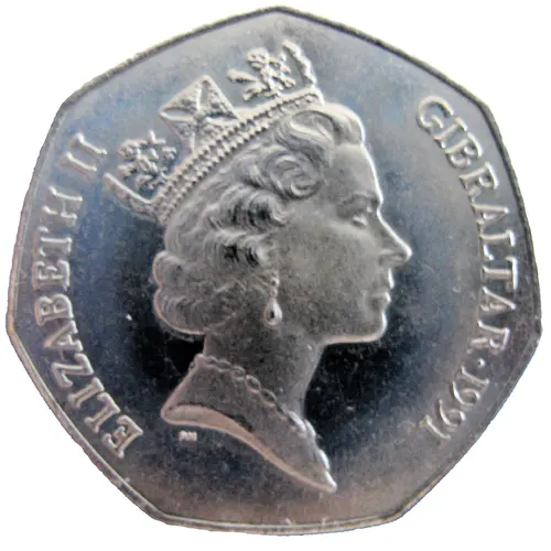| Obverse lettering | ELIZABETH II GIBRALTAR 1991 RDM PM |