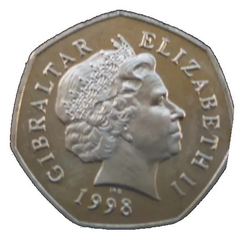 | 正面铭文 | GIBRALTAR ELIZABETH II IRB 1998 |