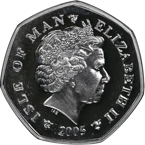 | Obverse lettering | ISLE OF MAN ELIZABETH II IRB 2005 |