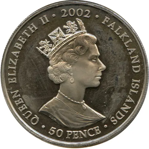| Obverse lettering | QUEEN ELIZABETH II·2002·FALKLAND ISLANDS·50 PENCE· |
