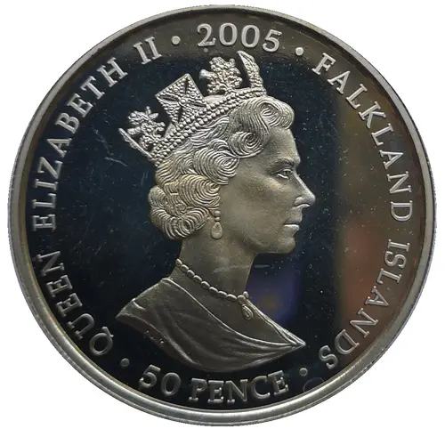 | Obverse lettering | Queen Elizabeth II . 2005 . Falkland Islands 50 Pence |