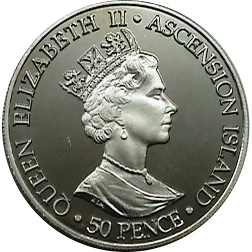 | Obverse lettering | · QUEEN ELIZABETH II · ASCENSION ISLAND · 50 PENCE |