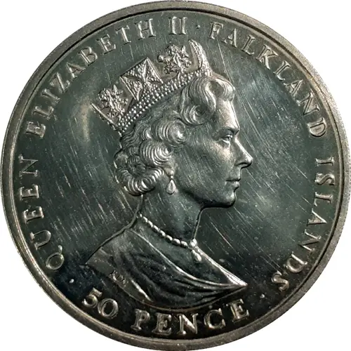 | 正面铭文 | QUEEN ELIZABETH II · FALKLAND ISLANDS RDM · 50 PENCE · |