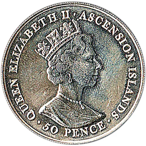 | Obverse lettering | · QUEEN ELIZABETH II · ASCENSION ISLANDS · 50 PENCE |