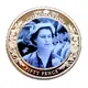 | Reverse description | Black and white picture of Queen Elizabeth II inspecting Guard of Honour within partial wreath |