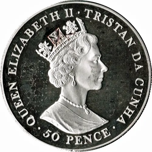 | Obverse lettering | QUEEN ELIZABETH II·TRISTAN DA CUNHA RDM ·50 PENCE· |