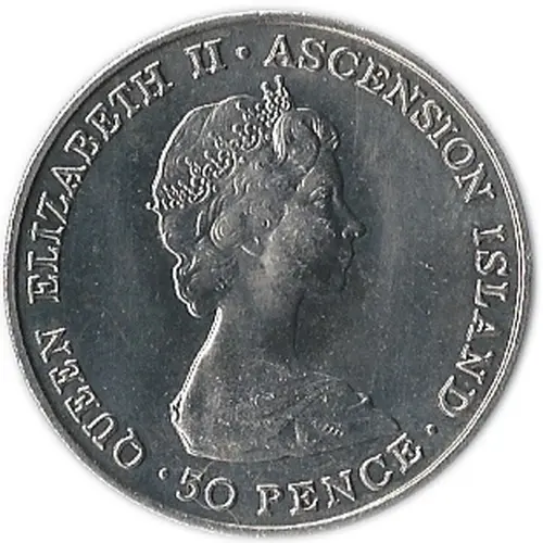 | Obverse description | Upright effigy of Queen Elizabeth II surrounded by the inscriptions `QUEEN ELIZABETH II`, `ASCENSION ISLAND` and the face value `50 PENCE`. |