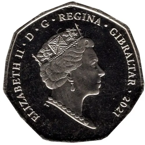 | Averslegende | ELIZABETH II · D · G · REGINA · GIBRALTAR · 2021 |