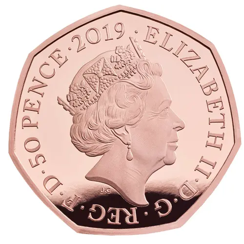 | Obverse lettering | ELIZABETH II·D·G·REG·F·D·50 PENCE·2019· J.C (Translation: Elizabeth the Second by the Grace of God Queen Defender of the Faith) |