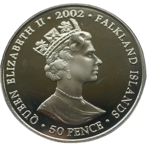 | Obverse lettering | QUEEN ELIZABETH II·2002·FALKLAND ISLANDS·50 PENCE· |