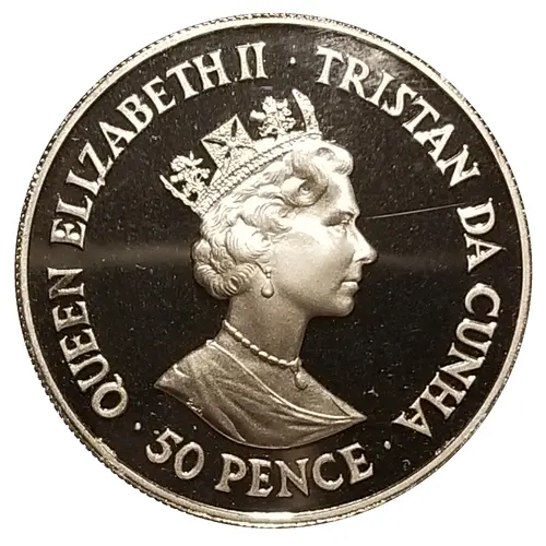 | Obverse lettering | QUEEN ELIZABETH II · TRISTAN DA CUNHA · 50 PENCE · |