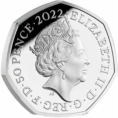 ELIZABETH II·D·G·REG·F·D·50 PENCE·2022· J.C (Translation: Elizabeth the Second by the Grace of God Queen Defender of the Faith) |