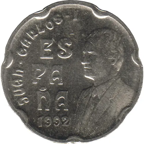 | Obverse lettering | JUAN CARLOS I ESPAÑA 1992 (Translation: Juan Carlos I Spain 1992) |