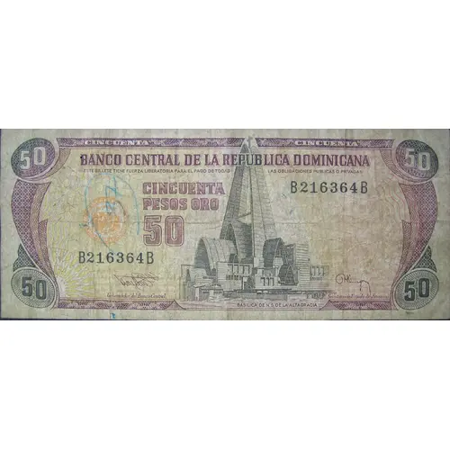 | Obverse lettering | 50 BANCO CENTRAL DE LA REPUBLICA DOMINICANA 50 CINQUENTA PESOS ORO |