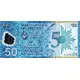 | Obverse description | On left, from top: Security numbers `50`, shown partial, to match with back side complement; serial number vertical, red; shape of the country as transparent window, with four `50` numerals, 2 to be read from front, 2 from back; face value on numerals. On center, from top: issuer name, Uruguayan coat of arms and dates, event name, signatures, face value in letters. On right, from top: Face value in numerals, 50th. Anniversary of BCU logo, issue year and serial, horizontal, black, graded size of digits, growing from left to right. |