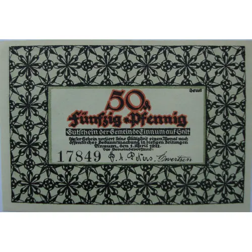 | Reverse lettering | Gutschein der gemeinde Tinnum auf Sylt, 50 pf. |